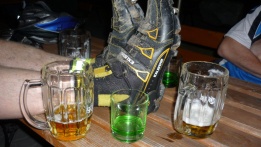 Po ránu chcanda, odpo legranda. Prostě májovej den. Crazy dojíždí na sraz v doprovodu novýho bikera s dlouhejma blond vlasama. Je to Vojta. Přesně ten týpek, co loni při Velký ceně Znojma dva metry před cílem zvedl svůj bike na oslavu vítězství na zadní a… spadl. Rychle překonáváme město až k „aralce“. Za Fordem vjíždíme klasicky do lesního porostu. Nejedeme však jako obvykle vpravo dolů ale objíždíme celou vodárnu kolem plotu a když už sme skoro zpátky ve městě strháváme řidítka doprava do celkem slušnýho sešupu dolů k silnici na Hradiště. Pak doprava kousek po ní a hned vjíždíme na gránickou cestu kolem „pivcáku“ směrem k hájence. Než k ní dorazíme, děláme na Gránickým potůčku novou sadu brodících fotek. Samotnou hájenku dáváme opět jako posledně levou stranou, protože na kolmo to po dešti nebylo nikdy nic moc. A my nechceme, aby nám hned ze začátku lítal kouř z uší při dvěstě tepech… Lesík směrem na Citky profrčíme poměrně rychle. Vyjíždíme na silnici do Bezkova. Pavlik nasazuje smrtící tempo, jako by se už viděl před nějakým imaginárním cílem. Za Bezkovem mu však proti docela hustýmu větru brzy dochází dech a v Podmolí už v místech, kde jiní jedou na velkej, šmrdlá prostřeďák. U rybníčka má Laďa dle očekávání zavříno a tak se „urážíme“ a jedeme dál po silnici až do Lukova ke Hrickům. Tady se svolením paní hospodský vytahujeme uzený mazivo, okurky i brzdu a hltáme, až se nám dělají boule za ušima. Nějakej místní porouchanej klučina na kolečkáčích se mezitím pokouší svojí neobratnou jízdou rozcentrovat Pavlikův vzorně zaparkovanej bike. Jako zákusek za uzeným dáváme „hónanovský“ brambory a razíme dál. Projíždíme Lukov až na bejvalou signálku za Novou vsí. Odsud se vydáváme na Příčky. Zde točíme zase do lesa směrem na Novej hrádek. Po asi půl kiláku zahejbáme vlevo. Přes Vlčici sjíždíme ke žlebáku. Odsud stoupáme po červený a za Lipinou dáváme směr vpravo, až dorážíme k Liščí skále. V krátký kochací desetiminutovce mastíme taky tady pár fotek. Pokračujeme směrem na Šobes. K Dyji však sjíždíme profláklým sjezdíkem vpravo po modrý až k zadní visutý lávce. Geri to docela brutálně pouští, ale Vojta se ho úplně bez problémů drží. Šikovnej klučina! Za přední lávkou uhejbáme doleva na fialovou, kterou se postupně dostáváme přes Havraníky do Popic. Tady dochází v krátkým časovým sledu ke dvěma výbornejm taškařicím na zadní stezce. Nejdřív si Louda, zřejmě pod dojmem, že spešl v celopéru je něco nadpozemskýho, ustýlá kachním pádem přes řidítka přímo u krásně renovovanýho antoníčka. Nakonec vše svádí na zelený blbečky, kteří tam určo ten odtokovej žlábek udělali naschvál. Prej tam nikdy nebyl. Ostatní ví, že byl, jenom nebyl tak pěkně opravenej. No o pár metrů dál přichází další prča. Kuře, kterej už několik kiláků předtím hrdinně projížděl všechny kaluže se slovy, že horší už to bejt stejně nemůže, se najednou předním kolem boří do neuvěřitelně hlubokýho bahýnka! Je rychle tasen foťák a dělá se pár snímků. Ostatní dávají poplašeně zpětnej chod a vrací se oklikou na silnici. V Konicích dojíždíme k hospě a vidíme zaparkovanej bike Kuřete, kterej, protože v letargickým afektu brodil bahnem dál napřímo, byl u výčepu oproti ostatním dřív. Po jednom vyprošťováku kmitáme na kravák. A protože správní řezani ho sjíždí vždy na kolmo, není co řešit, jede se kolmo od zesilovače. V tomto sjezdíku Geri konečně trochu utrhává Vojtu i Crazyho. Od mostu se vydáváme proti proudu gráničáku až k „aralce“. Tady se dnešní okruh uzavírá. Trochu sprchujeme biky a pak se limonádníci Crazy s Vojtou loučí a vyráží na Olbram. Zbytek neomylně nabírá kurz Dáseň. I když Kuře hází poznámku, že příště už by to mohl bejt konečně i Statek. V Dásni čeká překvapení v podobě nový obsluhy. No, na tu si budeme muset asi trochu zvykat… Ale kozlík je jako řemen! A to je tak fšecko.